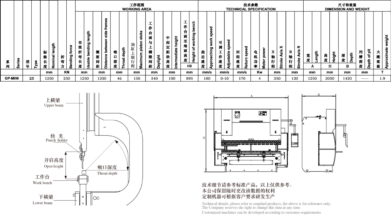 ?  貨真價實、 小型GP折彎機機身擁有了大型折彎機的主要特征。主要有兩款機型:MINI GP515 和MINI GP815, 整機可以升級為數控折彎及機器人集成折彎;
